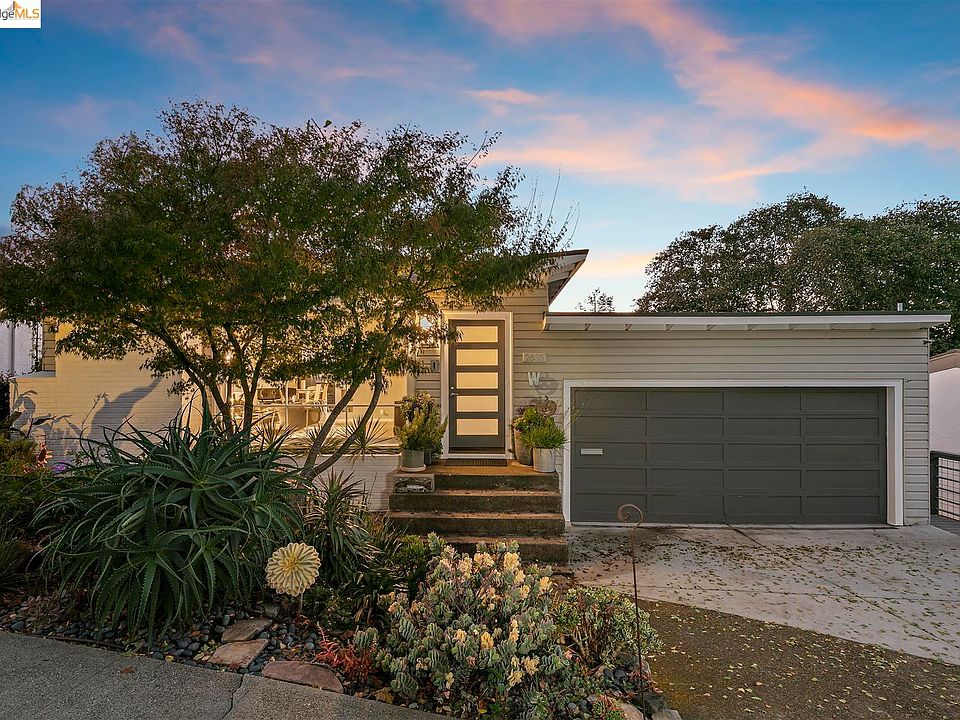 2635 Yuba Avenue is a stunning, modern El Cerrito hills beauty! Featuring tall slanted wood beamed ceilings, the living room welcomes in light and warmth through the oversized floor-to-ceiling 12 pane window. Entertain in the sunny dining room and beautifully remodeled kitchen featuring stainless steel appliances, quartz countertops, and sleek, modern cabinets. Bring the outdoors in and dine al fresco on the upper deck patio surrounded by lush trees. Downstairs are four lovely bedrooms, all with large closets offering endless storage. Two of the bedrooms are presently used as office spaces, but are easy to convert back to bedrooms. Enjoy two more private deck patios off of the bedrooms. All 2.5 bathrooms have been recently updated (2015). Situated next to a babbling creek, the lush terraced backyard is filled with fresh veggies growing in the garden. The detached studio space has full electricity - perfect for an an artist, or used as a private office. Open 10/28, 9:30am-12 + 10/31 2-4