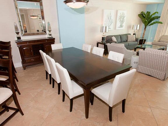 ABSOLUTELY STUNNING WEST CORNER UNIT @ TURQUOISE PLACE! The moment you walk in, you will quickly see what this 4 bedroom / 4.5 bath unit has to offer. High-end furniture from Malouf and Duh, custom curtains with blackouts in all rooms, shutters in the bar area and children's room, built-in shelves above the bar, custom master closet, surround sound, tile throughout and under the kitchen bar, new ice maker and an upgraded gas grill. Step out on the wrap-around balcony, and you'll experience panoramic views of the Gulf of Mexico! Turquoise has tons of amenities, including: 3 outdoor pools, 2 indoor pools, lazy river, onsite bar & grill, tennis courts, sauna and steam rooms, exercise rooms, and a kids playground. This truly is coastal living at its finest...DON'T MISS THIS DEAL!