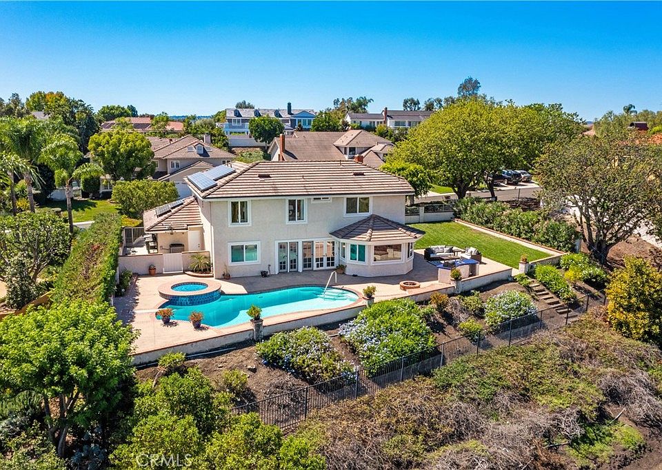 Beautiful four-bedroom, three full bathroom VIEW home, located on a quiet cul-de-sac in Nellie Gail Ranch. The living room features soaring ceilings, a dramatic fireplace and an adjacent dining area. The thoughtfully designed kitchen opens to the welcoming family room, both affording spectacular views of the hills, trees and neighborhood. The main floor also has a private bedroom/office with murphy bed and a full bathroom. The upstairs primary bedroom is generously sized, and the en-suite bathroom has dual vanities, shower, and a separate soaking tub. Two additional bedrooms and a huge bonus/game room complete the second floor. The backyard is appointed with a lovely pool & spa, built-in BBQ island, a firepit and panoramic vistas. The side yard offers a large grass area and has the potential to accommodate a RV parking area. The home is equestrian zoned and backs to one of Nellie Gail?s numerous horse trails.