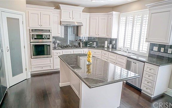 Stunning remodeled pool home. From the moment you enter this home you are enveloped and awed by the expansive openness of the cathedral ceilings and the numerous upgrades to this lovely home. Sleek new kitchen with white cabinets, granite and stainless steel appliances opening up to family room with new state of the art wall fireplace for those cozy nights. Formal dining room, downstairs full bathroom compliments the downstairs bedroom. Large master bedroom upstairs along with three additional bedrooms. Fresh neutral designer paint throughout, dark hardwood wide plank wood floors, designer stair rail, plantation shutters throughout, high baseboards throughout, whole house camera security system. Enjoy the warm sunny days in the refreshing pool/spa rock waterfall and entertaining with the built in BBQ. Walking distance to award winning elementary school and park.