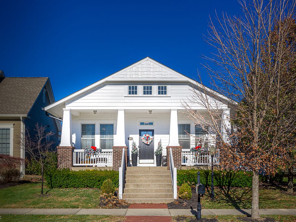 Welcome to this adorable 4-bedroom, 3.5-bathroom craftsman-style ranch home, perfectly situated in the desirable Village of West Clay community. Offering a spacious open floorplan, thoughtful design, and timeless updates, this home is a true gem. As you step inside, you'll be greeted by 9-foot ceilings and engineered hardwood floors that flow throughout the main level. The entry features a charming sitting room or flex space, ideal for a home office or cozy library. The updated kitchen is the heart of the home, complete with stainless steel appliances, a large center island, granite countertops and pantry. Adjacent, the great room invites you to relax by its cozy gas fireplace. The home's primary suite is a private retreat tucked away, featuring en-suite bathroom with a walk-in tiled shower and a spacious walk-in closet outfitted with a California closet system for optimal organization. Two additional bedrooms share a Jack-and-Jill bathroom, perfect for guests. The finished basement offers endless possibilities, with a generous entertaining space, a 4th bedroom, and a full bathroom. Outdoor living is equally impressive, with a fully fenced backyard, stamped patio, pergola, and lush landscaping creating a serene, private oasis. Additional features include a large front porch overlooking a picturesque pond and green space, a two-car garage, and ample storage throughout the home. The Village of West Clay offers incredible amenities, such as walking paths, multiple pool, gyms, and more. Don't miss your chance to see this charming and meticulously maintained home in the Village of West Clay!