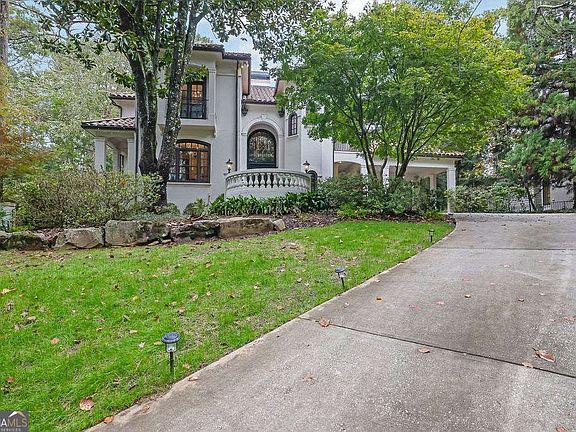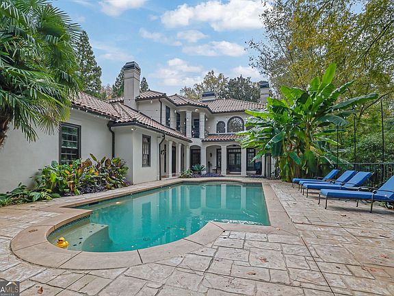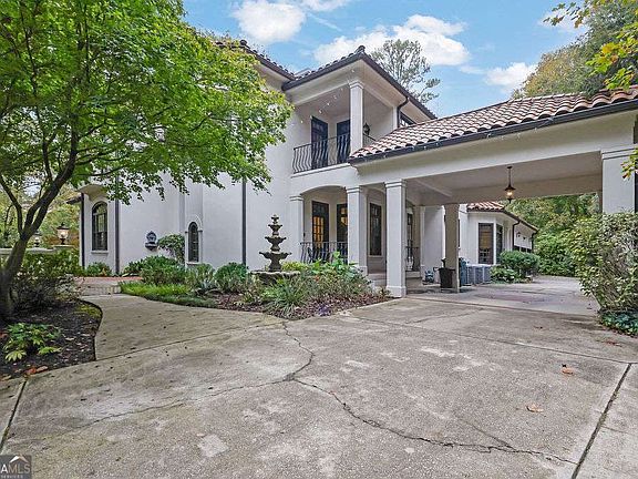 Priced below recent appraised value of 2.2 to 2.6 million. Gorgeous Mediterranean Modern in Prime Morris Brandon Elementary District. Nestled in one of the area's most desirable bedroom communities, this stunning home offers tranquility and convenience-just minutes from Downtown Atlanta, Truist Park, and everything the city has to offer. Perched gracefully on a gentle hill, this 5-bedroom, 4 full bath, and 2 half bath executive home boasts exceptional privacy and curb appeal, highlighted by a porte-cochere entry and elegant iron double doors that open to a grand Mediterranean-inspired foyer. The open-concept main floor is designed for both everyday living and elegant entertaining. A spacious ensuite guest bedroom and inviting living area-each with access to a private balcony-set the tone. The formal dining room flows seamlessly into the chef's kitchen, featuring a Sub-Zero refrigerator, 6-burner WOLF range, fireplace keeping room, and a cozy bay-window breakfast nook. The great room is a showpiece, with soaring ceilings, accented by wooden beams, custom built-ins, and expansive windows overlooking the saltwater gunite pool and flagstone patio. A covered patio with a dedicated pool half bath completes the resort-like outdoor space, along with a lower-level yard perfect for lawn games or soccer. Upstairs, the primary suite is a true retreat, offering two private balconies, a luxurious marble bathroom with Jacuzzi tub, dual vanities, separate water closet, built-in vanity, and dual walk-in closets. Two additional bedrooms share a Jack-and-Jill bath, and the laundry room is thoughtfully appointed with ample cabinetry and a sink. The finished terrace level expands the living space with a private patio, bedroom and full bath, exercise room with built-ins, spacious living and game areas, and a wet bar-perfect for entertaining or guest quarters. Additional storage areas complete this level. Additional Features: New Pool Pump 10/25, Newer barrel roof (3 years old), Upgraded light fixtures, Lawn irrigation system, separately metered, a 3-car garage, Gutter guards. Interior and exterior surround sound, the home is accented by impeccable landscaping, as well, previous seller had a radon mediation system installed. This home beautifully blends Mediterranean character with modern luxury-the perfect intown oasis offering privacy, elegance, and proximity to Atlanta's finest amenities.