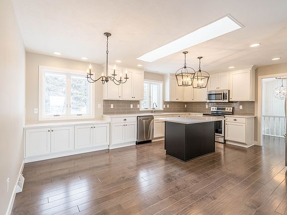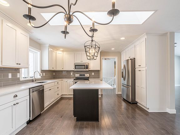 Welcome home! This stunning ranch has been completely remodeled from top to bottom! If you're looking for a home in a mature neighborhood yet an updated feel look no further! You will love the open concept of the main floor. The kitchen boasts gorgeous stone counter tops, brand new stainless steel appliances, white cabinets and more. The beautiful wood floors flow through the dining and living room. Large windows offer plenty of natural light. Your master suite awaits with double vanities, a large walk in closet and an luxurious tiled shower. Everything in this home has been upgraded including the two fireplaces, a brand new deck and garage door! The basement walks out to the large backyard with extra storage room under the garage. You don't want to miss this one! Come see why this will be your next home!
