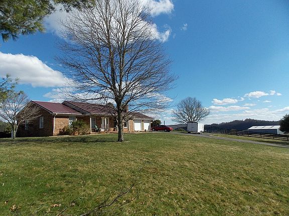 This nice 39.72 +/- acre farm features long road frontage, long range views, and a nicely remodeled home! Main level features of the 4 bedroom 3 bath brick home include an open floor plan, great room with engineered hardwood flooring and brick fireplace, dining area, updated kitchen with Hickory cabinets and stainless steel appliances, master suite with hardwoods and an updated master bathroom, hall bathroom, and a large guest bedroom which could be turned back into two bedrooms! In the full finished basement you'll find a large den with a wet bar, an office area, two more bedrooms, a third full bathroom, and a large laundry room! Other features of the home include a heat pump, metal roof, oversized attached garage, rear deck, covered front porch, and a paved driveway! On the outside you'll find 39.72 +/- fenced acres with long road frontage, multiple building sites, a tractor shed, hay storage, shop building, a nice stream of water for the animals, and long range views!