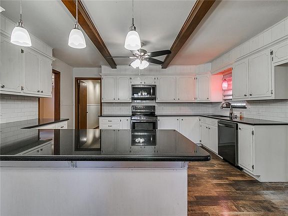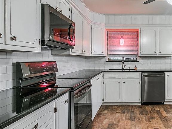 Unique mid-century home located in a lovely established area of NW OKC with an easy commute to almost anywhere in the metro area; especially downtown! Features 3 large bedrooms, 2 full baths, & a big front room that can be a flex space, formal dining/living, or office. Huge secondary living space w/lovely built-ins and grand hearth/fireplace has two access points to the big backyard. Private fully fenced backyard has big shade trees, open deck, & lots of room to relax and play. Kitchen has been recently remodeled w/granite counter tops, stainless steel appliances including a new oven/range, built-in microwave, sink & faucet, lighting, & breakfast bar. The adjoining dining room offers nice built-in storage. There are newer luxury vinyl plank floors throughout the kitchen, dining, & secondary living area. The bedrooms, hallway, & large front room feature original hardwood floors! Master has beautiful updated bath & there are several new vinyl windows throughout. So many possibilities!