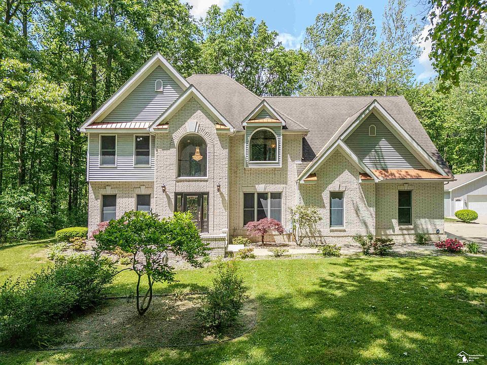 Welcome to 2636 Wood Road! This is the one you've been waiting to hit the market! Breathtaking drive up to your new hidden oasis. Boasting almost 3000 square feet, this custom built 4 bedroom, 2.5 bath stunning home is move-in ready! Nestled on a one of a kind 5.8 acre wooded lot that offers an abundance of privacy and seclusion. Spend time hiking or on your ATV through the trails. Spacious kitchen with quartz counters with breakfast nook. Formal dining room. Living room with fireplace, sitting room, and wet bar area. Double sided grand staircase. Owners suite has extra large bathroom and fireplace. Large windows offering natural light and beautiful views. Home has been freshly painted. New vinyl plank flooring throughout main level. New light fixtures. New furnace, 2023. Storage galore with bonus area above 3 car garage that could be finished for more square footage. Full basement with egress window. 30x48 pole barn. City water and natural gas. Reverse osmosis system. Patio with newer hot tub that stays. All appliances included! The list goes on and on - truly a home and property you must see in person. Don't miss your opportunity! Call for your showing or more information.