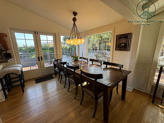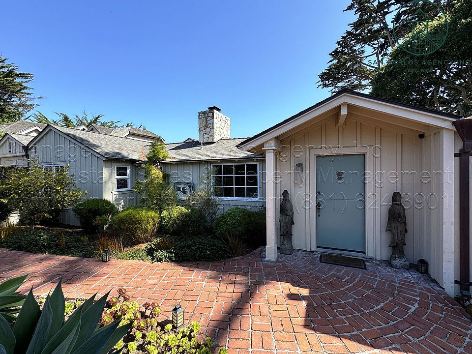 (NIEDL) San Carlos Agency, Inc. presents this charming three bedroom, two bath home located on a large double lot in the heart of Carmel Point. The living room features hardwood floors and vaulted ceilings with a gas log fireplace. There is an adjacent formal dining room/bonus room with beautiful stained glass window and an additional gas log fireplace. Living area exits via French doors to extensive brick patio with additional backyard area. The kitchen features painted white cabinets with white tile countertops, gas range, refrigerator, microwave and dishwasher. Bedrooms are carpeted and the master features a vaulted ceiling, gorgeous stained glass window, and walk-in closet in addition to an en suite bath with separate shower and tub. Clothes washer and dryer are in laundry room and left as a courtesy. Parking in attached single car garage. Tenant will be responsible for all utilities including the expense of a gardener. Initial lease term through 6/30/25. No Smoking. Pet negotiable. Contact San Carlos Agency, Inc.