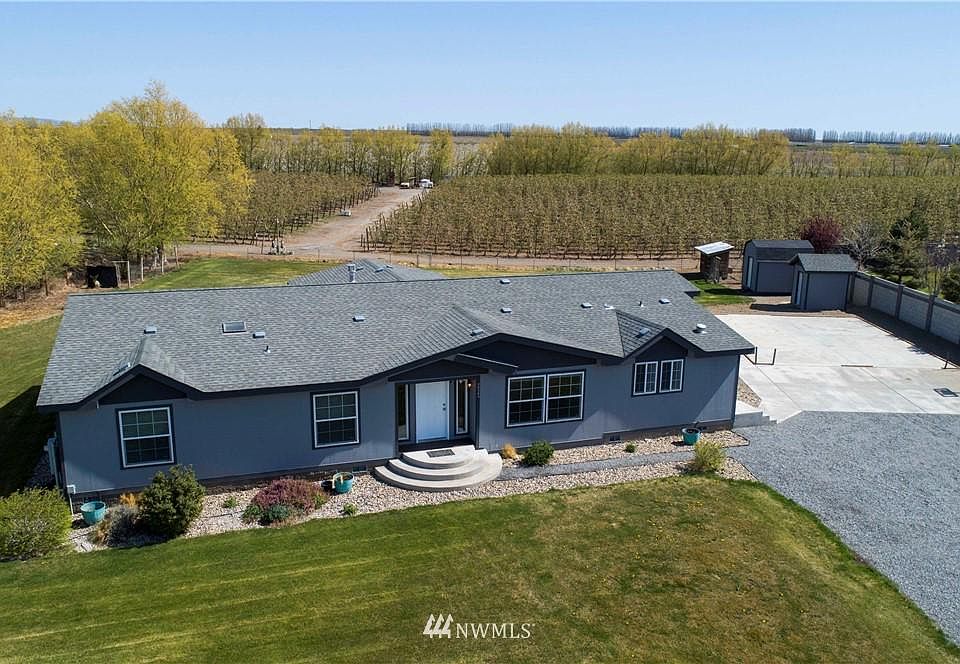 You'll be attracted to the Stunning Views: Mountains, River, Orchards, Vineyards, Spectacular Sunsets...But you'll Stay for the Peace. The home is a 2,996 SF Triple-wide Manufactured Home in IMMACULATE Condition on One Acre! Recently Painted Exterior & Interior! Brand New Carpet! New Luxury Vinyl Plank in the Formal Dining Room! Four Big Bedrooms, 2 Full Baths, 1 Half Bath! Huge Living Room w/ Propane-Plumbed Fireplace! Family Room & Informal Dining off of the Fabulous Kitchen! LARGE BONUS ROOM! Walk-in Pantry w/ Light! All Appliances STAY! Reverse Osmosis Water Filtration! Large Utility Room w/ Deep Sink! 36 tons of gravel recently put in Driveway! 30x30 concrete slab is ready for your Garage! So Beautiful, So Comfortable... & So Peaceful!