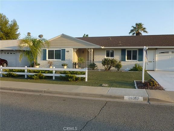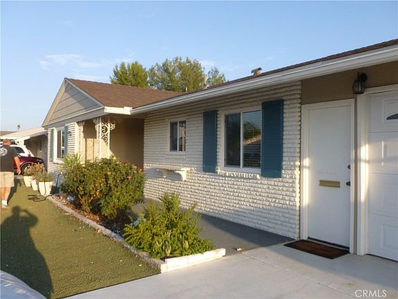 Don't miss seeing this Del Webb #100 which has been beautifully upgraded in the very desirable 55+ community in Menifee. Low taxes and no Mello-Roos. Freshly painted interior. 4 ton AC unit. This home features two bedrooms with an optional office/bedroom and two baths. All windows and sliding glass doors have been upgraded with dual pane vinyl windows. Home is located on the closed North Golf Course with expansive South tree lined views. Orange tree, lemon & peach trees in backyard with auto sprinklers. Large covered patio has a pebble tech stone finish for family & friends entertaining. As you enter this home, you are welcomed into a beautiful living room and dinning area with wood vinyl flooring. Light and bright kitchen has vinyl plank flooring, built-in microwave, recessed lighting and white tile counters. Direct door access to two car garage. Vertical blinds and fans throughout home. Newer 4 ton AC heat pump unit will keep you cool during those hot summer days & nights. If you are a active senior, come and enjoy the two pools, spa, workshops, gym and other facilities that are offered at the Community Center. Close to freeway access and shopping with a variety of restaurants to enjoy.