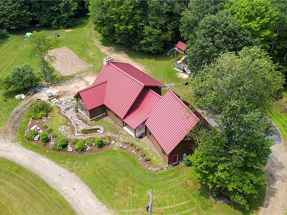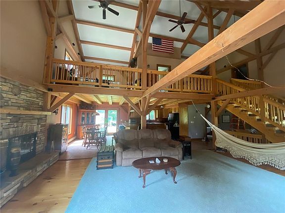 She's a beauty! Custom chalet tucked away on 40 of the most gorgeous acres with trails and campsites. The home has 3025 sq ft with an additional 1200 sq ft in the walk-out basement/in-law apartment. Douglas fir beams throughout home are extraordinary and were taken from the property. 56 x 32 two story outbuilding(heated floors) for all the toys! Only 20 minutes to Erie.
