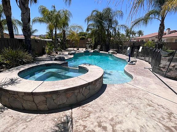 The auction for Hubzu property 501199069673 ends 11-18-2022 at 04:00 PM ET. Why wait? Bid on this property now. Visit Hubzu.com to get started. * Recently remodel * New flooring and fresh painting * easy to show * This amazing single-story home in Prestigious Saratoga Ranch Built in 2006. Large four bedroom three bathrooms home with extensive master suite with double walk-in closets, bathroom suite has a tub and shower area. Open kitchen with Granite Counter tops, Natural Beechwood Cabinets and private breakfast area, walking pantry and laundry room next to the kitchen. Large living room and family room with cozy fireplace makes it a delight to entertain. The backyard contains stamped concrete and many fruit trees. Property also have a Three car garage and a circular driveway. Property has 2,666 square feet of living space with an 1/2 acre lot. This house contains a swimming pool and Spa as well as R.V. access/parking with dual gates.. This home is located in a wonderful East Hemet School district. You must see and fall in love. Property has new flooring, fresh paint, turn key condition ready to move in!
