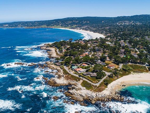 Beauty surrounds and permeates this tranquil and inviting home by the sea, located on a private residential street in coveted Carmel Point. It is well situated, convenient to 3 beaches, with the stunning Carmel River State Beach 3 houses away. Majestic views of Point Lobos and the dramatic Pacific coastline entrance as you relax and are lulled by the sounds of the ocean. Watch for pods of whales, squadrons of pelicans; toast golden sunsets. Sit on the sunny main deck or meditate in the secret garden. The cheerful living room and flowing floor plan beckon one back in via French doors from the large outdoor deck. Entertain from the recently updated kitchen. At day's end, retire to one of three bedrooms, each with ocean views and access to outdoor decks. Three full bathrooms are upstairs and one downstairs. The 4700 sq ft lot has low maintenance gardens, an attached two car garage, and generous storage. Come for rejuvenating weekends or enjoy this lovely home as a full-time residence.
