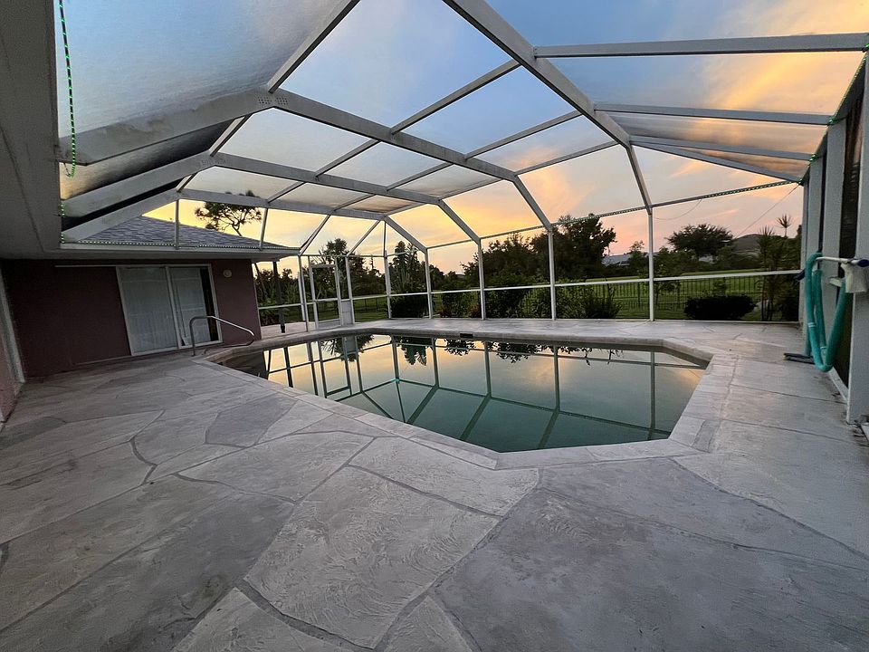 Welcome to this recently updated, 3-bedroom, 2-bathroom pool home located in the desirable area of Deep Creek (Punta Gorda). $2,595 ** Annual ** Custom, Renovated Pool Home **3 Bedroom / 2 Bath * Deep Creek This lovely, split floor plan offers several comfortable and inviting living spaces including a living room with a wood-burning fireplace. The large walk-through kitchen features a built-in bar for entertaining. Step out towards the back of the house to your fully enclosed Florida Room, which overlooks the Saltwater pool, which is enclosed in a Screened-in Lanai. The tiled screened in entry takes you to the wood stained glass front door. Laminate wood flooring covers most of the house with the exception of the Florida Room and Craft Room which are tiled. The Third bedroom has been converted to a Home Studio with Acoustic treatment. The sliding sound panels can be easily removed by the seller if not wanted or needed. A built-in Entertainment Center in the Living Room has interesting features. The kitchen has Granite countertops and a closet pantry. Real wood burning fireplace in family room and so much more. Large, Spacious, 2-Car garage with its screen doors and tiled floor. Walk out to the back lanai and right out to the creek beyond the green belt. Enjoy serene views and privacy. Contact us today to schedule a viewing and experience the charm of this Port Charlotte gem. * All tenants will be screened for Rental, Credit & Criminal Background ** First Month Rent, Last Month Rent, Security Deposit, Utility Deposit will be due prior to Move-in