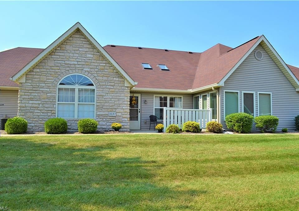 2637 Barnstone Ave SW, Canton, OH in Perry Township. Hard to find condo with year round sun room/den! Desirable open concept floor plan with split bedroom design. Spacious great room and dining area with cathedral ceiling, sky lights and a ceiling fan. The fully applianced kitchen has a breakfast bar, nice cabinetry with ample storage and pantry with pull out shelves. You'll appreciate the walk in closet in each bedroom, the large master bathroom with step in shower, and the 2nd full bathroom. The laundry, off the kitchen, includes a washer and dryer and leads to the 2 car garage. Recently painted throughout, tastefully decorated, so clean and move in ready. The refrigerator, gas stove and washing machine are 1 - 2 years old. You'll love this friendly, well-kept neighborhood! Remarks
