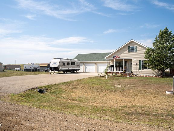 Well maintained 3 bedroom modular home in rural setting w/in minutes from Watford City. As you drive up you will find a paved driveway (a rarity in this subdivision) pulling up to a 3 car garage equipped w/power, workbench & doors to front & back yard. The covered front porch is only the beginning of this lovely home. This home boasts brand new carpet in living room, hall and master bedroom. You will love this well thought out kitchen w/numerous cabinets, brand new Karndeen long board flooring, & window overlooking backyard. The double level bar is an awesome feature whether working from home or baking. Dining room fitted with faux wood blinds & sliding door to your little piece of outside privacy, complemented by a newly stained patio & privacy fence. Easily double your space by finishing the insulated loft. This 3/4+ acre property features a fully fenced backyard and an 18'x24' shop to house all your toys, vehicles and garden supplies.