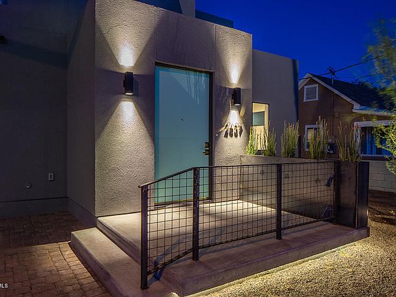 Modern, Architectural New Build in one of the hottest areas in Phoenix. Perfectly central in Phoenix, this 2,178 sf 3 bed 2.5 bath home features a wrap around deck upstairs in a 700 sf master bedroom suite. Double height volume in kitchen with 19 foot ceilings. Designer finishes throughout. Semi-custom birch cabinets in kitchen. Bertazzoni dual fuel range, champagne bronze and matte black fixtures, LED lighting throughout, 3 skylights, tankless water heater, whitewashed bamboo flooring, 67'' freestanding tub in master bath, Cantilevered concrete entrance porch, cantilevered staircase volume. Raw steel staircase inside, concrete floor with aggregate exposed. Custom power garage glass garage door, marble countertops and backsplash, solid birch interior doors, ceiling speakers, Dacor range hood, Kitchen Aid panel ready fridge, raised steel lawn bed with synthetic grass, block and corten steel fencing, large shaded paver driveway, modern landscape, 2nd laundry in master bedroom. Rusted steel fence/ gate/ automated. (Shaded parking on side of home) Well-renowned local Designer Mack Ketcham. April 2019 Update: Fully permitted glass enclosed loft office. 150 additional sq feet