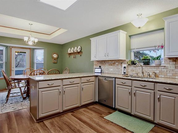 Extremely well cared for Wichita house with Maize Schools! Beautiful manicured yard with mature birch trees greet you in the cul de sac. Vaulted ceilings as you walk in to the living room with wood burning fireplace. Updated kitchen to the right with new granite tops, wonderfully painted cabinets, pantry, and new backsplash and fixtures. Large master bedroom with; walk in closet, coffered ceiling, UPDATED bath, twin sinks, separate jetted tub and shower, and more! Two more great sized bedrooms and another updated hall bath. View out basement has a huge family/rec room with one more bedroom and bathroom. Don't miss the laundry chute! Deck is partially covered and a portion of the backyard is fenced. Just a short trip down the sidewalk to the playground and pool!
