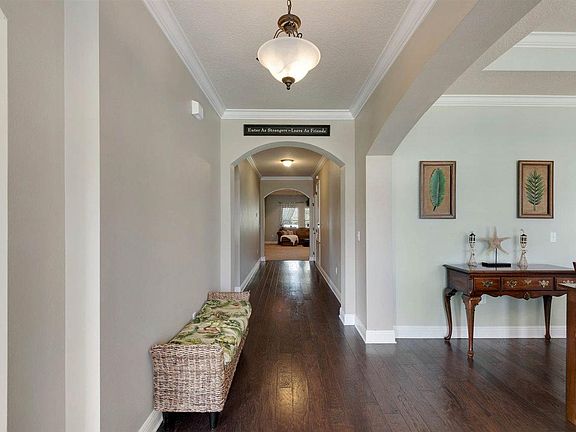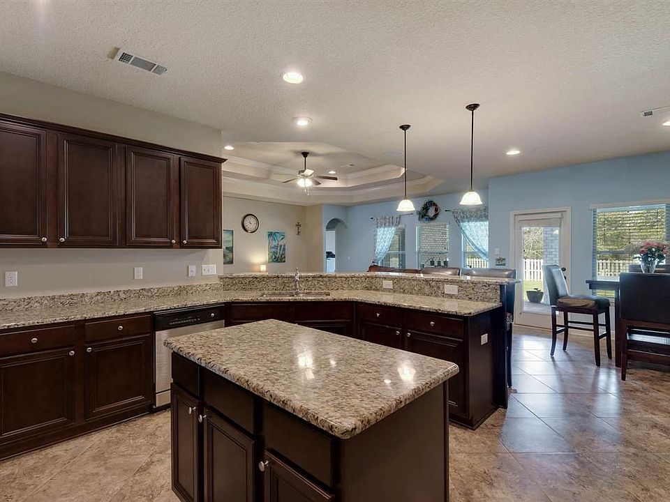 Better than New home in Pace, the prestigious, Ashley Plantation. This 5 bedroom 3 bath home, The McKenzie model, is one of the most desirable and functional floor plans built by DR Horton. Quality is evident as soon as you drive up. The inviting portico leads to a luxurious entryway adorned with hardwoods that flow into the formal dining room and office. There are 3 separate wings, which make this home perfect for both everyday living and entertaining as well. The spacious, well appointed kitchen has granite counter tops and a huge island and opens to the breakfast and living areas. The walk in pantry will thrill any cook. A cozy wood burning fireplace anchors the living room and will be something the entire family enjoys in the colder months. A built in surround sound system that can be heard in the living room, master bath, and back patio are just a few of the bonuses in this well thought out home. Tray ceilings and crown molding add that elegant finishing touch. The master suite is expansive and the master bath has a 5 foot tiled shower, garden tub, and a dual granite vanity. The master bedroom has a door that leading to the large covered patio where you will find a beautiful fully fenced backyard with a brick fire pit for those outdoor evenings with family and friends. Complete privacy with nothing behind you but acres and acres of woodlands... The alarm system is top of the line and hard wired for your peace of mind. Smoke detectors/alarm are linked to the Fire Department and Police Station. Don't miss this amazing house- with all the upgrades included it will not last. Make an appointment to see it today! OPEN HOUSE SUNDAY March 20th 1pm-4pm.