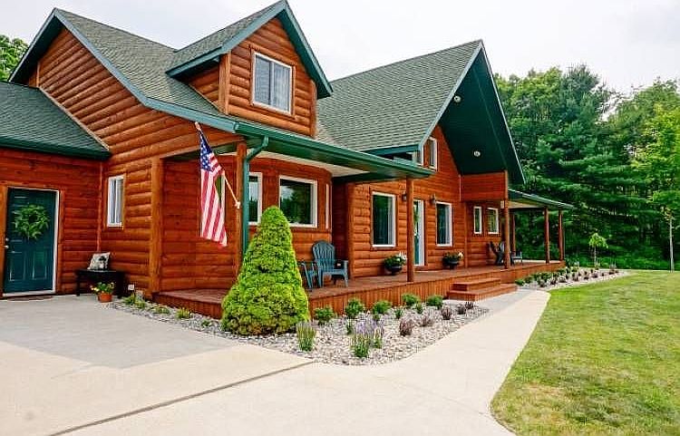 Move in ready! All the work has been done for you in this 1.5 story, 3 bedroom 3.5 bath home. Features include over 2950 sq. ft. with a large eat in kitchen, custom maple cabinets, stainless steel appliances and large peninsula style bar. Beautiful open family room with 18' ceiling with butterfly truss system and Majestic gas log fireplace. The main floor master bedroom features bay window with window seat and walk-in closets with pull out gun safe. Master bath shower with ceramic tile with pebble floor, dual shower head and large jet tub. 2nd floor features 2 bedrooms with each having own bath and large living room overlooking the 1st floor. Walkout basement with 9' 4" ceilings and plumbed for a full bath. Other features include a 5 acre yard with a 32 x 48 pole barn, 2.5 car attached garage, 12 x 16 shed, stamped concrete firepit. Located 14 minutes from Dow, Dow Corning, Mall and Downtown Midland