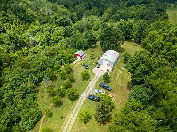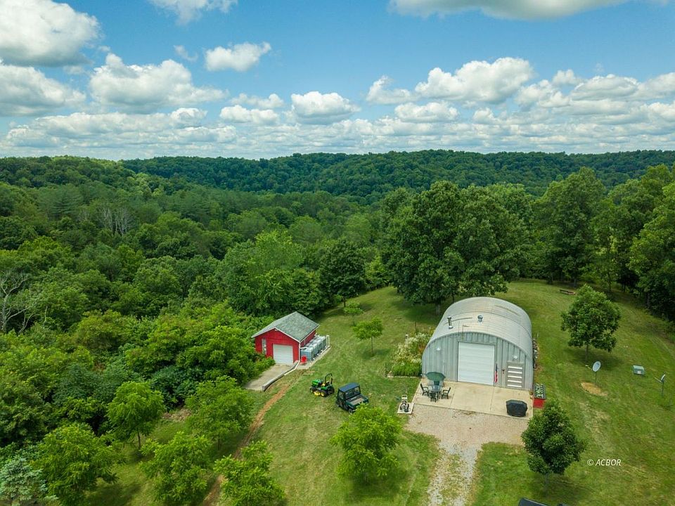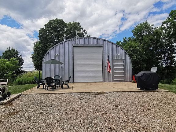 If the onset of the pandemic found you in your cellar, double checking your stocks of toilet paper, water, and shelf stable food, this may be the home for you. This Quonset style dwelling is built to function independently of society if that's your thing: the Kohler whole-house generator is fueled by propane, with a 1000 gallon buried propane tank, there's a 1000 gallon rainwater catchment system, and a massive garden. The home is robust, with a steel shell, concrete slab, and 6 inches of insulation throughout. And possibly the best part: the home sits on top of 67 gorgeous wooded acres, bursting with wildlife, and mineral rights are included! Outside you've got a 50' by 150' deer-proofed garden with 20 raised beds, fruit trees, and more. The acreage boasts hundreds of black walnut trees. And if that didn't have you dashing to make an appointment with your favorite Realtor, the home is being sold fully furnished, including all the tools and equipment needed to operate this (nearly) off-grid oasis, including a wireless multi-camera security system, a Polaris Ranger, a John Deere tractor, a chipper-shredder, auger, roto-tiller, etc. Toilet paper is not included.