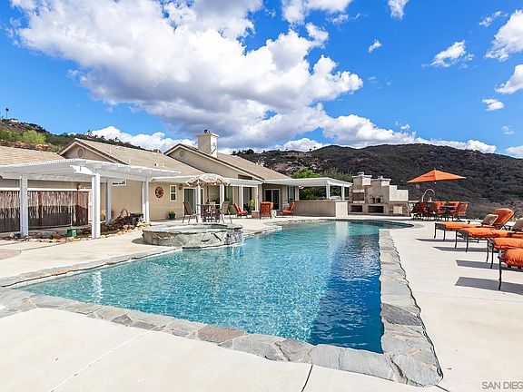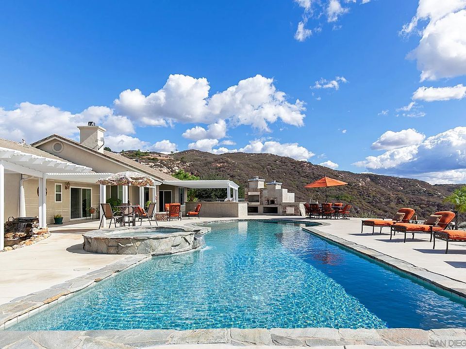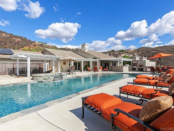 This Ridge Ranch view home is a must see. Amazing resort style pool and backyard. Home boasts 4 bedrooms, 4 bath, 3304 Sq feet (approx), 6 car garage with epoxy flooring, and located on 4.3 acres. Perfect home for the executive or growing family. Kitchen features: Granite countertops, stainless steel appliances, built in refrigerator, and double ovens. Backyard features: Pool with salt system and AquaPod remote, BBQ island, 2 fire pits, pizza oven, wine captains, pond with filter system, treks decking, and aluminum patio cover. Misc features: Whole home solar, gated community and gated home, RV parking, propane, central vac, 2 water heaters, 2 air conditioning, Laundry room with storage, hardwood flooring in living room and dining area, fireplace in family room and primary bedroom, and crown molding.
