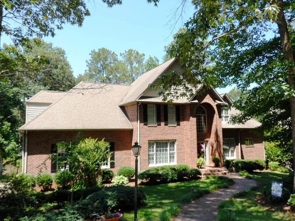 All brick home with a finished basement on a waterfront lot! Beautiful open floor plan with lots of vaulted ceilings and generous upgrades. Downstairs Master with a glamour bath. 4 bedrooms 2 baths upstairs. 1 bedroom, Gym and a Man Cave in the basement. Basement also includes a garage workshop, full bath, & walk in cedar closet. Oversized garage on main level. Enjoy evenings fishing in your wooded fenced backyard.