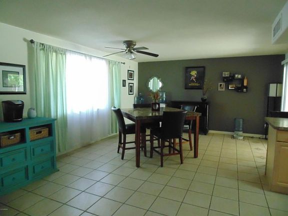 Completely remodeled in 2010. This home has newer cabinets in kitchen and bathrooms. Tile flooring in kitchen, dining room, one bedroom, hallway and bathrooms. New dishwasher and living room carpet in 2014. Fridge, washer and dryer included. Open rooms give you plenty of space to roam. Check out the size of the master bedroom!!! Full size garage with access to front porch and rear patio. Separate laundry room located at rear of garage offers additional storage space.