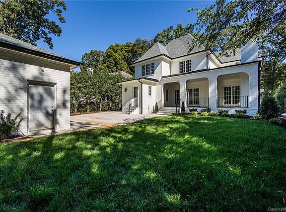 Beautiful new construction on one of Myers Park's favorite streets, move-in ready! 5 Bedrooms, 4 full & 2 half baths. Master suite on main, master bath with Carrera marble. 2nd floor offers 4 bedrooms with en-suite baths & a large bonus room. Generous closets. High-end appliances and finishes, hardwoods throughout, high ceilings, open floorplan, pretty windows, custom millwork & cabinetry. Covered porch with fireplace, private courtyard. 2 car detached garage. Third floor finished room.