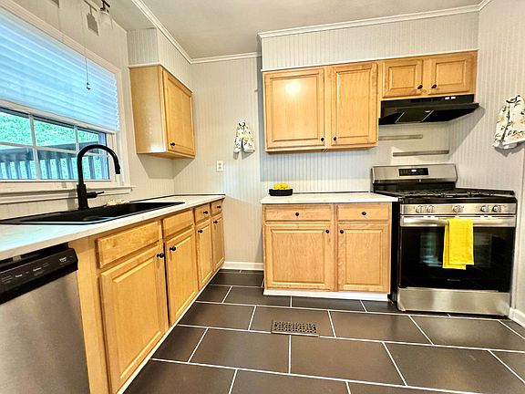 Explore this charming 3-bed, 1-bath South Ashland home! The main floor boasts a living room, dining room, and 2 bedrooms, all adorned with beautiful hardwood flooring and bathed in abundant natural light. Venture out onto the expansive covered deck from the dining room and enjoy an outdoor oasis. The kitchen, laundry room, and bathroom feature elegant tile flooring, with the bathroom offering a tiled shower and a new vanity. Ascend to the upper floor to discover the third bedroom. Don't miss out on this cozy gem!