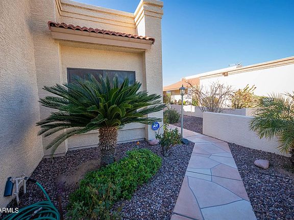 Just bring your bags to this beautiful move in ready home! Right when you walk in the door you will love the vaulted ceilings and open floor plan. This lovely home has 2 large bedrooms. The primary bedroom has tall ceilings and is big enough for large furniture. The primary bath boasts dual sinks and a walk in closet! Work from home Then you will appreciate the spacious separate den, The large kitchen with beautiful granite countertops is perfect for the home cook. Relax on the patio in the large landscaped backyard and pick fresh oranges for your breakfast mimosa! This community has so much to offer, golf, swimming, and hiking! Do not miss out on this wonderful home!