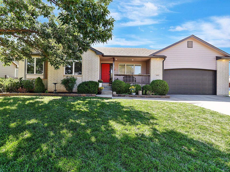 Stylishly updated and meticulously maintained, this charming home is nestled in the desirable Aberdeen neighborhood of West Wichita on a peaceful cul-de-sac. From the inviting curved front porch to the exceptional curb appeal, this home is sure to impress. Inside, you'll find an updated open floor plan featuring stunning LVP flooring, vaulted ceilings, and a cozy electric fireplace. The newly remodeled kitchen features new cabinets and island, quartz countertops, and new stainless appliances. The main floor has three bedrooms and two bathrooms, including a luxurious primary suite with a double quartz vanity, a walk-in tiled shower, and a relaxing soaker tub. Convenient main floor laundry is located just off the primary bedroom. Downstairs, a spacious family room awaits, complete with a wet bar and additional living space perfect for a kids' play area. You'll also find a 4th bedroom, a bathroom, and ample storage. Step outside to enjoy the fully fenced backyard with a deck and a beautifully manicured lawn, perfect for outdoor living and entertaining. MAIZE SCHOOL, NO SPECIALS.