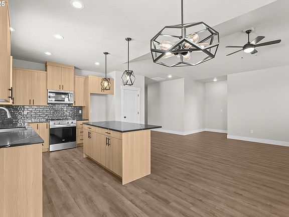 MOVE IN READY! Start your tour at the host home at 744 NE Trillium Dr, to view available homes in Dugan Estates! Explore the Rock Creek Modern floor plan located in the highly desirable Dugan Estates community. This stunning new construction home features a spacious vaulted great room with a cozy fireplace and stylish, low-maintenance laminate flooring—perfect for both entertaining and everyday living.With 3 bedrooms and 2 full bathrooms, this single-level home offers comfort and functionality. The gourmet kitchen is amazing, showcasing stainless steel appliances, elegant slab countertops, and a convenient walk-in pantry.The primary suite is a relaxing retreat, complete with a large walk-in closet, double vanity, and a beautiful shower. The 3-car tandem garage provides ample storage space for vehicles, tools and hobbies. Come tour these beautiful new homes in Dugan Estates – a premier location for modern living!Note: Washers, dryers, and refrigerators are not included. INCENTIVES WITH PREFERRED LENDER!