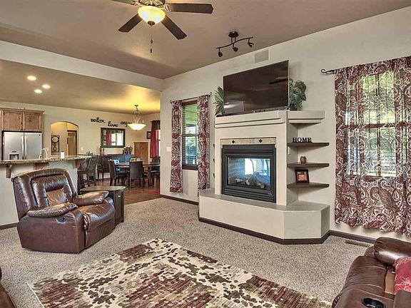Spacious home in quiet North neighborhood on acre corner lot. This 4 bedroom, 2 bathroom home with split floor plan is custom from top to bottom. It includes solid surface Granicrete counter tops, wood laminate flooring in kitchen and dining room, office that opens into living room, a 2 way gas fireplace from the living room out onto the back patio. Master bedroom has trayed ceiling and door out onto back patio. 5 piece master bath includes a walk in shower, and his and hers closet. Not included in square footage is a 340 square foot area over the garage that could be converted into a bonus room. Lots of room in back yard for hosting parties and bbqs. Extra deep garage and lots of RV parking for all of your toys. Energy star rated.