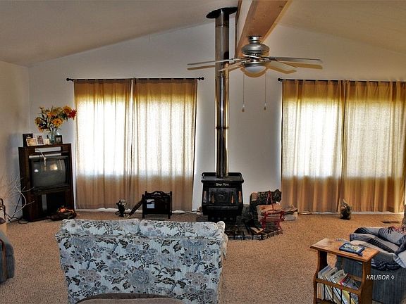 - Interior Features: Vaulted Ceilings, Ceiling Fans, Window Coverings, Wood Burning Stove, Flooring- Carpet, Flooring- Linoleum
