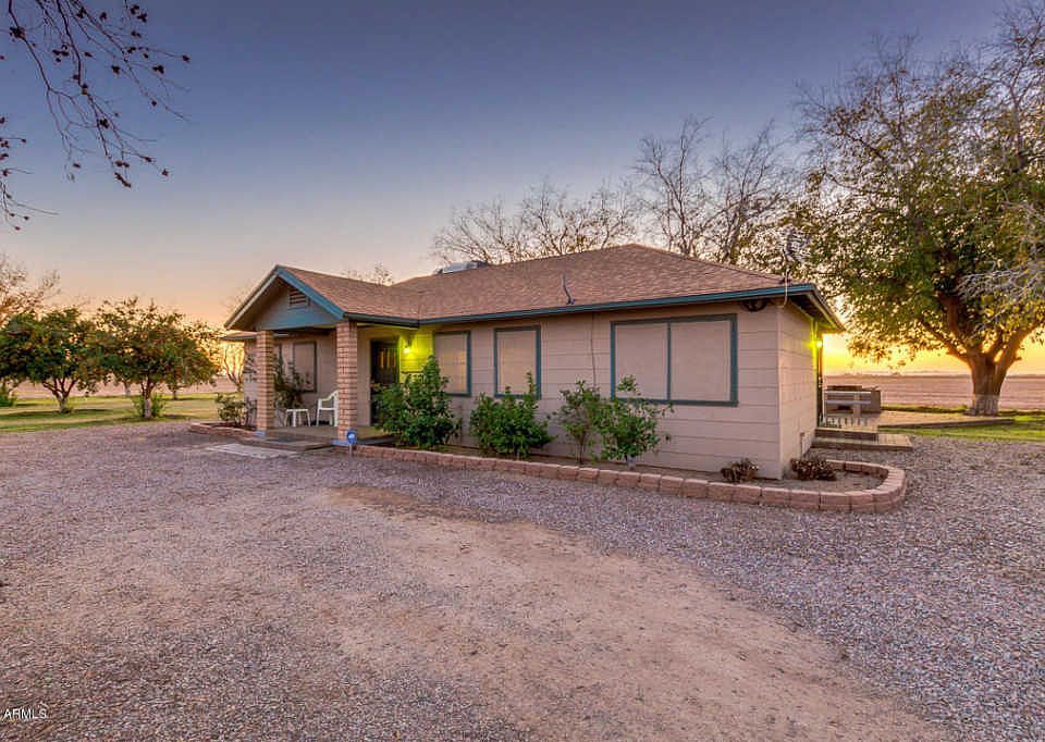 Don't miss this CHARMING home with LARGE WORKSHOP in Casa Grande! The home, built in the 1930's was moved to this BEAUTIFUL 2.2ACRES IRRIGATED lot in 1982! Inside you will find the original WOOD FLOORS and SOLID WOOD cabinets! Kitchen has been accented with complimenting glass tile backsplash. The LARGE FAMILY ROOM has it's own separate entrance and the ability to be converted to a 3rd bedroom. The bedrooms are oversized and provide plenty of closet space. Plumbing, wiring, and HVAC had updates in 2019. The 1,248 sq ft WORKSHOP has ROLL UP doors on each end of the building and both water and electric service. It's perfect for your hobbies and toys! Enjoy the SHADED OUTDOORS with PAVERED PATIO, built-in BBQ, and TONS of pecan and fruit bearing trees. This home is a must see!
