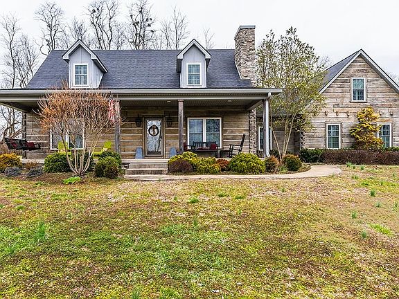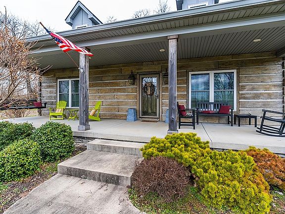 One of a kind Gentlemen's farm nestled in 5 acres across the road from Governor Beshear's WinStar Farm. If your desire is to be landlocked for privacy, this is your rare opportunity. One owner designed cement log home built by Bobby O'Connell w/ huge input from owner. Veranda accommodates lots of furniture to watch incredible sunsets. 5 plus acres are plank fenced w/ gate. Stone fireplace is the perfect focal point in the open plan Great Room. Kitchen designed by Kitchen Concepts w/ staggered white cabinets, granite island w/ bar & stainless appliances. Master on 1st floor w/ bath featuring high vanity. Upstairs is a second bedroom w/ ensuite bath. Loft could be third bedroom, office or bonus area. Walk up storage above garage was designed to give option of finishing as there is head room. Rear screened porch is yet another slice of Heaven. Owner has lovingly cared for this home & it shows throughout the property both inside & out! Don't miss your opportunity to own this gem!