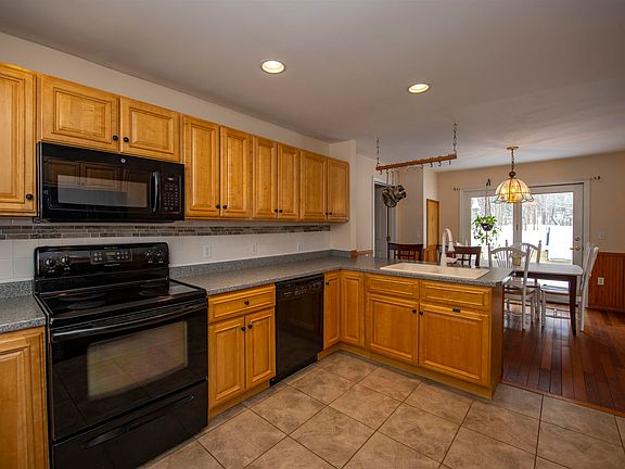 This contemporary Gambrel is located across the road from beautiful Lake Fairlee! With a level lot, there is plenty of garden space, mature apple trees and lots of perennials! The first floor has a pellet stove in the living room to efficiently warm and create a wonderful ambiance for these snowy days, and also has heated radiant floors. The large kitchen is perfect for hosting big meals. The dining nook has a view of the woods, and down the hallway a half bath/laundry room, and a bonus storage room. Upstairs, the spacious primary suite has a walk-in closet, a second closet and an ensuite bathroom with jetted tub and shower stall, heated by radiant floors. Three additional bedrooms upstairs, a second full bathroom and an extra room that has access to an exterior stairway. The home has three garage bays; the smaller bay is currently used as a workshop. Outside is an 8 x 12 shed with an electric overhead light and power outlet. A new generator outlet was installed in 2022. The home has a Buderus oil burner that heats the baseboard units, radiant floors and water. All Harvey classic double-hung windows throughout the home. This property is in a great location with a seasonal view of Lake Fairlee, about a half mile walk to Treasure Island, a local town owned recreation area on the shore of Lake Fairlee with a boat launch about one mile away. Ten minutes to Thetford Academy, 20 minutes to the Dartmouth Skiway, and 30 minutes to West Lebanon.