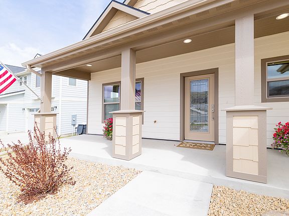 This charming single level, like new home in Mountain View Meadows offers a perfect blend of comfort and convenience. You'll be greeted by an inviting open floor plan that connects the living, dining, and kitchen areas. The large bright windows flood the interior with natural light, creating a warm and welcoming ambiance throughout the home. The kitchen features modern appliances, ample cabinet space, and a breakfast bar. Prepare to be impressed by the thoughtful touches throughout, including Hunter Douglas Smart Blinds that effortlessly enhance privacy and control lighting with just a touch of a button. In the garage you'll appreciate the convenience of the fold-down work bench. With xeriscape landscaping, you can enjoy a beautiful outdoor space without the hassle of high maintenance. You'll enjoy the peaceful neighborhood while still being just minutes away from all the amenities that Mountain View Meadows has to offer.