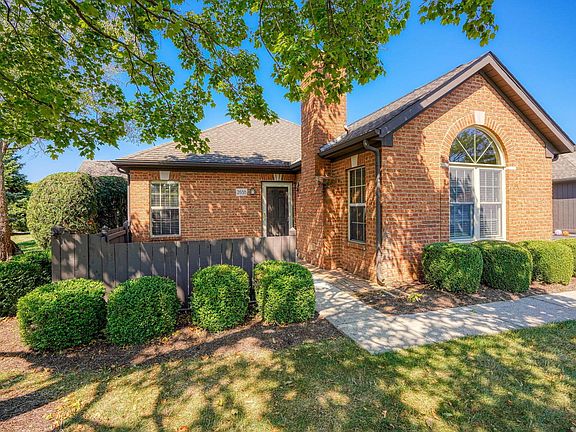 Adorable 2-bedroom Villa located in popular Trotters Chase condominium. This home offers all new wall paint & laminate flooring throughout, new window blinds, living room w/vaulted ceiling & lighted fan, foyer w/tile flooring, storm door, coat closet, wood burning fireplace w/wall mirror & mantel, a bright kitchen with oak cabinetry, Quartz counter tops, white appliances including refrigerator, smooth top range, newer microwave, dishwasher, tile back splash & tile flooring, dining room w/chandelier, 1.5 bathrooms w/tile flooring, primary bedroom w/walk in closet, 50 gal hot water tank/new in 2022, HVAC replaced in 2015, new thermostat, washer & dryer, garden patio, 1-car attached garage with attic storage. Community clubhouse with pool & exercise room. Walk to shopping & restaurants.