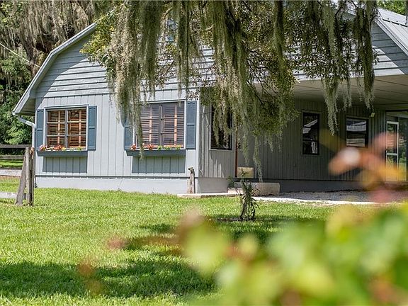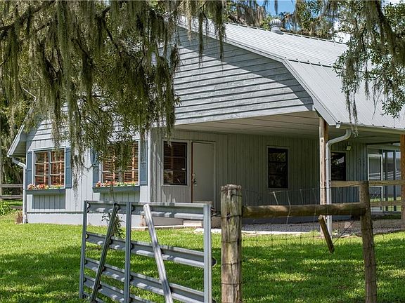 A split level plan with an upper loft on 3.3 shady, grassy acres at the end of a password required gated entry, central heat & A/C, with extra A/C units & ceiling fans in the loft. Home is located in a lovely, quiet rural neighborhood. Also on property are 2 very large storage buildings, on concrete slabs (recently cleaned). One is an RV sized building, the other would house numerous autos 6+, boats, or suitable for conversion to horse stalls. Recently installed new flooring in downstairs bedroom, currently painting the upstairs loft - the 2nd bedroom, office, or music room. Spectrum cable available, already wired, with fairly new stainless steel appliances= very clean. Located just minutes to I-75 and shopping, or 20 minutes to Brooksville, or 45 minutes to Tampa. Prefer a lease arrangement to a monthly rental. Only pets okay. See all photos on listing- email with questions or to make an appointment to see. Leasing party pays for electric with a $25.00 credit monthly toward rent to cover owner's use of the workshop behind the house. Location has municipal water supply; will be paid by landlord. The electric bill will be dictated by the leasing party's use of A/C, etc. Typically between $100.00- $175.00. Prefer no smoking in the house; all house broken pets and farm animals are welcome. Recent tenant references will be required & which will be called to verify. A one year lease commitment is required, first/last and security deposit required upon signing for any agreed upon term. The leasing party will be in charge of lawn/pasture maintenance, although other arrangements could be considered by Owner. Rental payment is due in full on the designated day of each month, i.e. the 1st, the 5th, or the 20th. Prefer VENMO payments, but cash/checks okay. After 3 days missed monthly payment, a $5.00 late penalty will begin to accrue per day until full payment is received. Option to rent the RV hangar, 45' X 20'= 900 sq. ft.; $250.00 per month additional