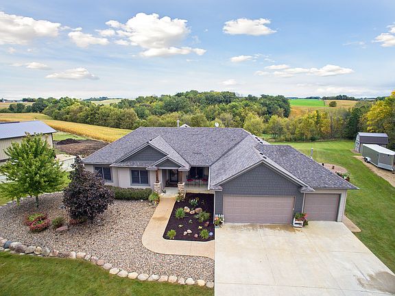 Beautiful custom built JB Woodfitter rambler on 4+ acres. Home has 3 bedrooms on main level, 2 bedrooms in lower level. Gorgeous Hickory main level floors, SS, 2 gas burning fireplaces, main floor laundry, master w/ soaker tub and separate shower. Gorgeous views of the mature trees and rolling hills. Large LL walk-out, oversized 3 car garage, room for a shop adjacent to the home, new Tuff shed in 2017 (12x16) for outdoor storage.