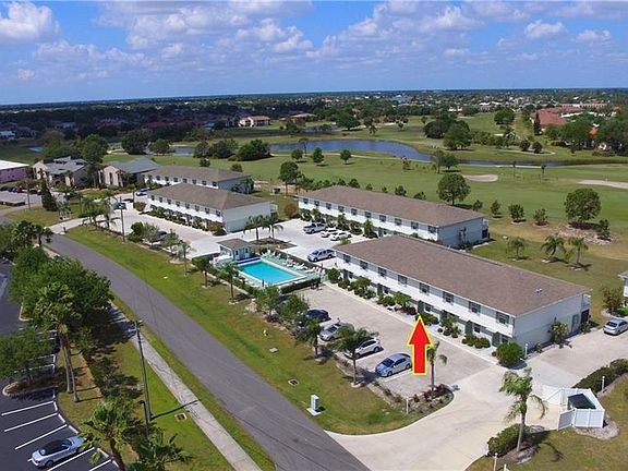This beautifully maintained, 2 bedroom 2.5 bath golf course view townhouse with heated swimming pool is a must see. Open floor plan on the first floor with updated kitchen, breakfast bar, dining/living room combination, 1/2 bath and spacious enclosed lanai overlooking the 10th fairway of Deep Creek golf course. Tiled flooring throughout the first floor for easy maintenance. Wood cabinets in kitchen and recently tiled back-splash, new dishwasher, new microwave range hood, large sink with new faucet. Water heater and washer/dryer located on first floor. New screen/storm door at entrance, sliding pocket glass doors exit to the lanai. Storage closet on lanai for your golf clubs. 2nd floor features two spacious bedrooms, each with their own en-suite bath. Guest bath with tub shower combination. Master bedroom has large walk in closet and en suite bath with walk in shower and two sinks. Master bedroom has the luxury of open air balcony to sit and enjoy the golfers. Both bathrooms on 2nd level have new tiled floor. Home also offers humidistat and surge protector on electrical box. Heated community swimming pool for hours of enjoyment. Partially Furnished. Great location, minutes to some of Florida's best GOLFING, DINING, SHOPPING, PARKS, PUBLIC BOAT RAMPS, MARINAS, BEACHES, I-75, the shopping mall, drive to the Barrier Islands of Manasota Key and Boca Grande & 10 minutes to the Historic Riverfront Downtown Punta Gorda, Harborwalk & Fishermen's Village. No age restrictions. Not in a flood zone and no CDD Tax.