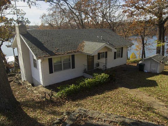 AMAZING PANORAMIC YEARLONG LAKEVIEW!!! GENTLE WALK TO THE WATER!!! This lovely lake home is truly a retreat. The cozy living & dining room on the main floor boasts a wood burning fireplace, Hardwood floors, & large windows. Plenty of storage in the big open kitchen. Sitting on the huge covered deck, you relax & watch the boats on the Kings River Channel of Table Rock Lake which is known for its great fishing. Beautiful Sunrises and sunsets. Plenty of room in the walk out basement too, which includes a family room & another full bath. Outside, there is a storage shed, a John Deere room, & RV Parking. Architectural Shingles, No HOA fees, Lake front Fabulous views & easy lake access make this one you'll want to keep forever.