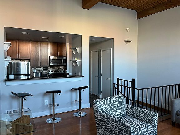 Welcome to The Shipyard at 2639 Boston Street unit 103, a fully furnished, luxury one-bedroom condo in the heart of Baltimore. Life in the city doesn't get any better than this location! This fully upgraded one-bedroom / one and a half bathrooms, two-level condo comes with its own parking spot in the building's gated parking area, and unlimited guest parking. The upper level boasts gorgeous hardwood floors, a spacious family room with amazing NY loft tall ceilings, an open kitchen with granite counters and stainless steel appliances, a big breakfast bar, and a powder room. The space is also filled with natural light thanks to the huge windows. Go down the beautiful hardwood spiral staircase to the master bedroom suite, which boasts 2 big closets, a master bathroom, and the washer/ dryer combo.