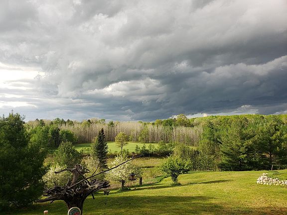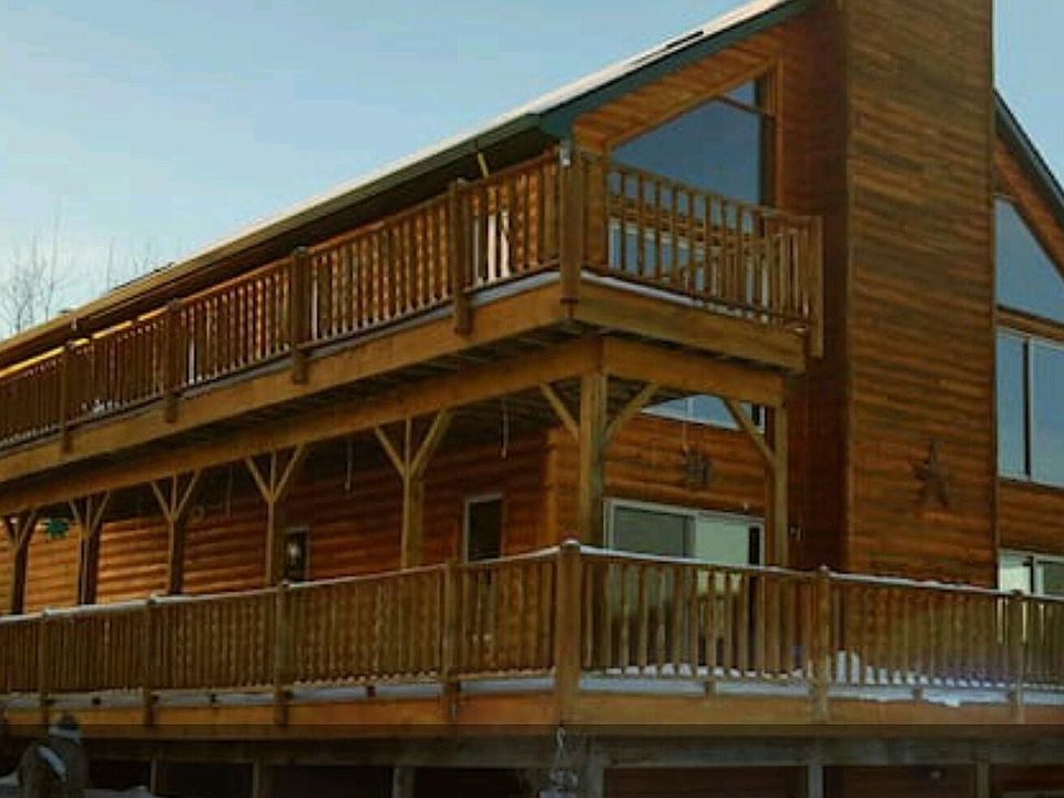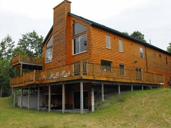 Your new beautiful home sets on a hilltop overlooking a scenic 37 acres with a trout stream, rye field, apple trees and abundant wild life! Each room has it's own unique view of the property and surrounding natural beauty. Custom built in 2007 with high-end materials this home has everything! Knotty pine throughout, granite counter tops, slate and tile flooring, energy efficient, spray foam insulated, radiant heating in floors, wood stove, and instant hot water heater. Both master bedrooms have spacious full baths with jacuzzi tubs. The large picture windows and around deck allow you to enjoy nature without even leaving the house! Many private trails on property for walking and ATV's, multiple custom deer blinds, half-mile from Cedar Valley Golf Course, Frontier Amusement Fun Park.