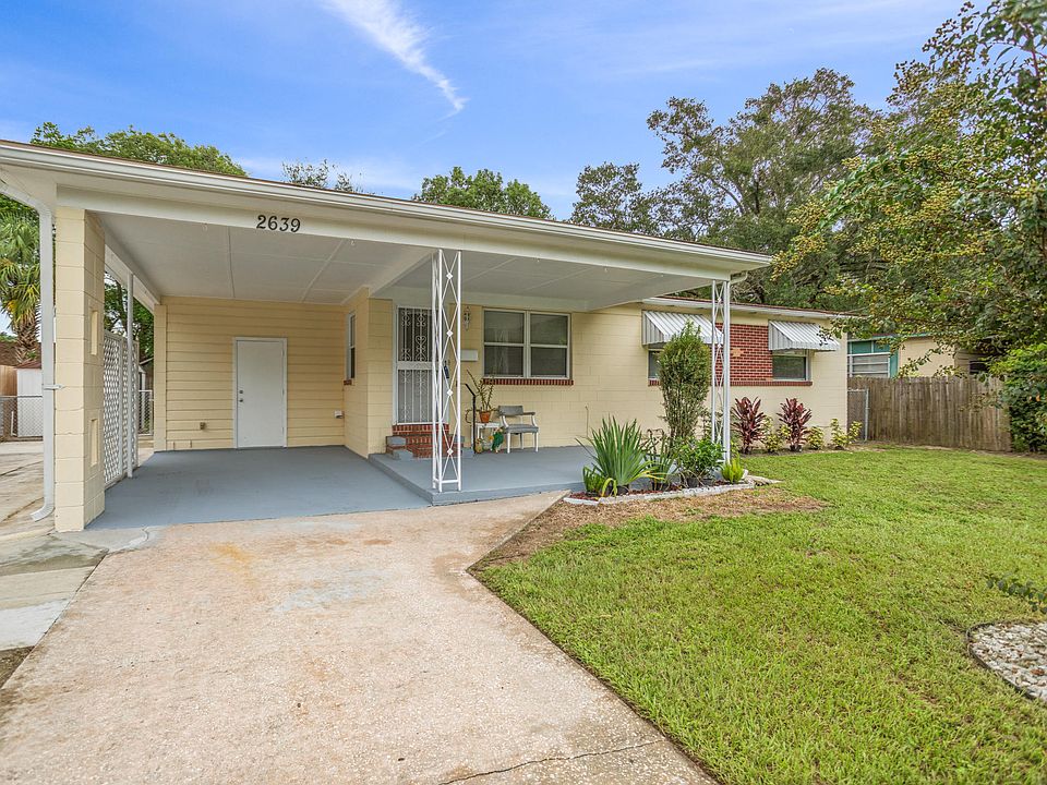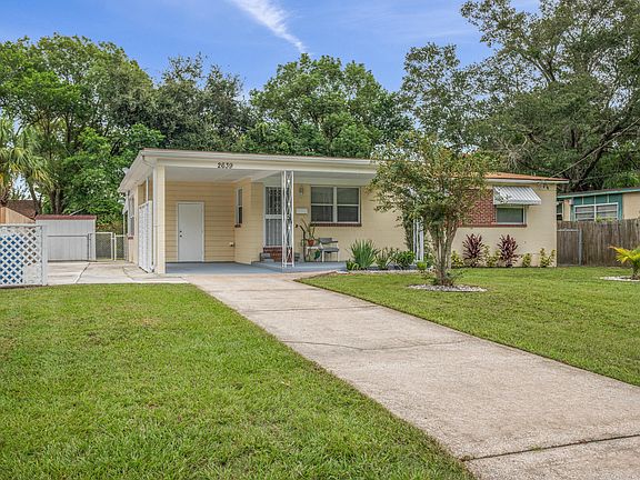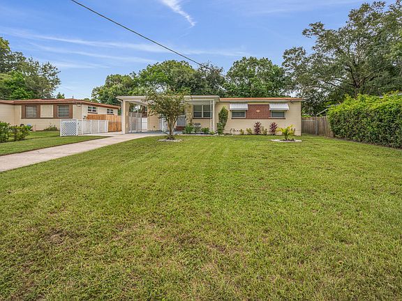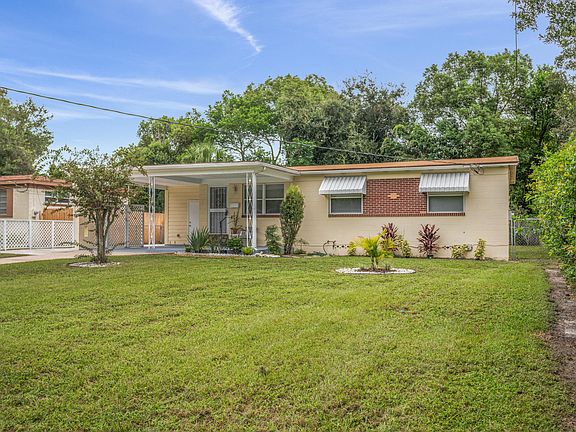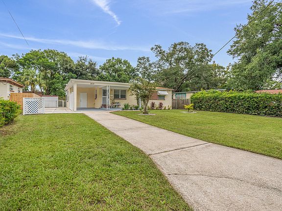 Adorable 3/1 & 1/2 beautifully renovated retro style concrete block home move in ready. Starting with a front covered porch; this home offers beautiful hardwood floors, tile flooring in wet areas; formal living, dining room & bonus room that could be used for a den, office or art studio; laundry is off the bonus rm with washer and dryer. Kitchen offers an eat in area & garden window to grow your herbs. Large fenced backyard space enough for a pool w/ a covered patio for entertaining & shed for storage along with shallow well for sprinkler system. This home can be a great starter home or a home to downsize into. You will not be disappointed so Set up your appointment ASAP as this one will not last. Roof 2011, Drainage pipe 2014, re-pipe 2001. Home Warranty
