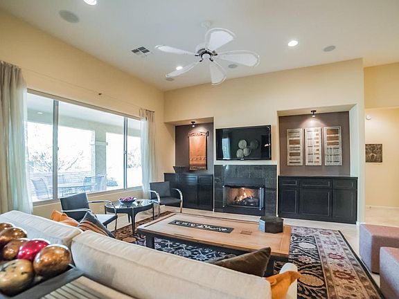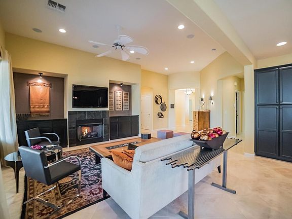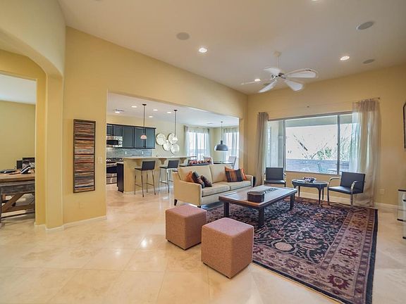 This Fiesta model elevation D has been customized and upgraded throughout. A media center including Fireplace, Flat screen TV and custom cabinetry is the focal point of the Great Room. The flooring is Travertine. Top of the line Stainless steel appliances highlight the custom kitchens Quartz counters and the custom color of the cabinets. From the Master Bath to the Lighting, to the Window coverings, to the Custom interior paint scheme and the expanded rear Patio, this home offers nothing but the best. The quality upgrades of this home would be difficult to duplicate and certainly not at this price. A wonderful home and a great value truly move in ready. Put this home on your list and be sure to take a look.