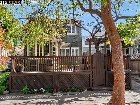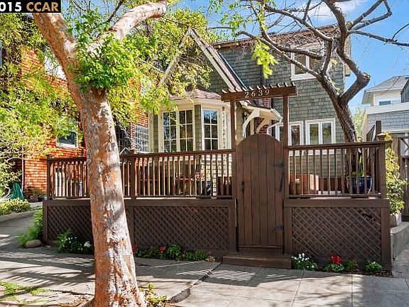 Storybook 1 bedroom cottage in heart of Elmwood. Dark hardwoods, picture molding, and brick fireplace in living room. Expansive front deck and private back patio for entertaining. Eat-in kitchen with shaker style cabinets, gas range, stackable washer/dryer. Blocks to College Ave, Cal, public transit