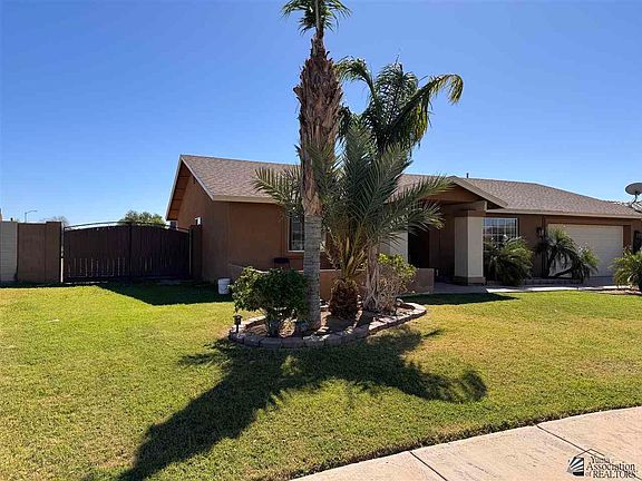 Beautiful curb appeal! You are going to fall in love the moment this home comes into view. Sitting on a big lot over 8000 Sq. Ft. in size, with lush lawn in the front and back yards adorned with mature palms. Enjoy an open concept living, dining & kitchen area complete with breakfast bar & pantry. Saltillo tile & neutral tone walls in main areas. Sliding doors off dining room lead to a covered patio - perfect for upcoming summer BBQ's. Double gate access to the backyard complete with sewer dump. Must See!