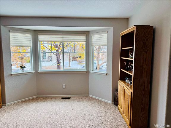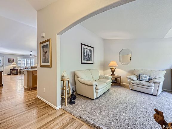 Welcome to this beautiful ranch style home in the golf course community of Vista Ridge. As soon as you enter you are greeted with real hardwood floors, on your right is a large front room perfect for holidays, gatherings, an office, dining or add a door and a closet to create a large fourth bedroom on the main level. As you continue into the home you are greeted by the vaulted ceilings, large and open kitchen featuring a large center island, built in microwave, induction stove/oven/range, dishwasher and more! This opens directly into the dining area and family room with gas fireplace. The gas fireplace can heat the entire home. Just off the family room is a door that leads you to your private, fully fenced backyard complete with trex deck, grass yard, flower/garden area, mature trees, bushes and grass with sprinkler system. Back inside and down the hall you will find the primary bedroom featuring vaulted ceilings, a private five piece bathroom and walk-in closet. Continue down the hall a little further to find the laundry / mudroom, second full bathroom and the secondary bedrooms. Everything you need is right here on this main level. The basement is over 900 square feet of additional space - finish it or use it as it is. Back upstairs you will want to visit the 2 car garage featuring a wall of built in cabinetry, work space and drawers for all of your supplies. This home is near the elementary school, Colorado National Golf Course - Home of the Buffs - and the community pool and clubhouse. This home offers so much value for the money and once you see it for yourself, we believe you will agree with us. Other benefits of this home are: New exterior and interior paint, gutters with leaf guard, gas fireplace with remote & fan, basement has rough-in for bathroom, additional insulation in the attic, TV Mounts are included and the seller is providing a 1 year home warranty. 1 owner home that has been loved and cared for.
